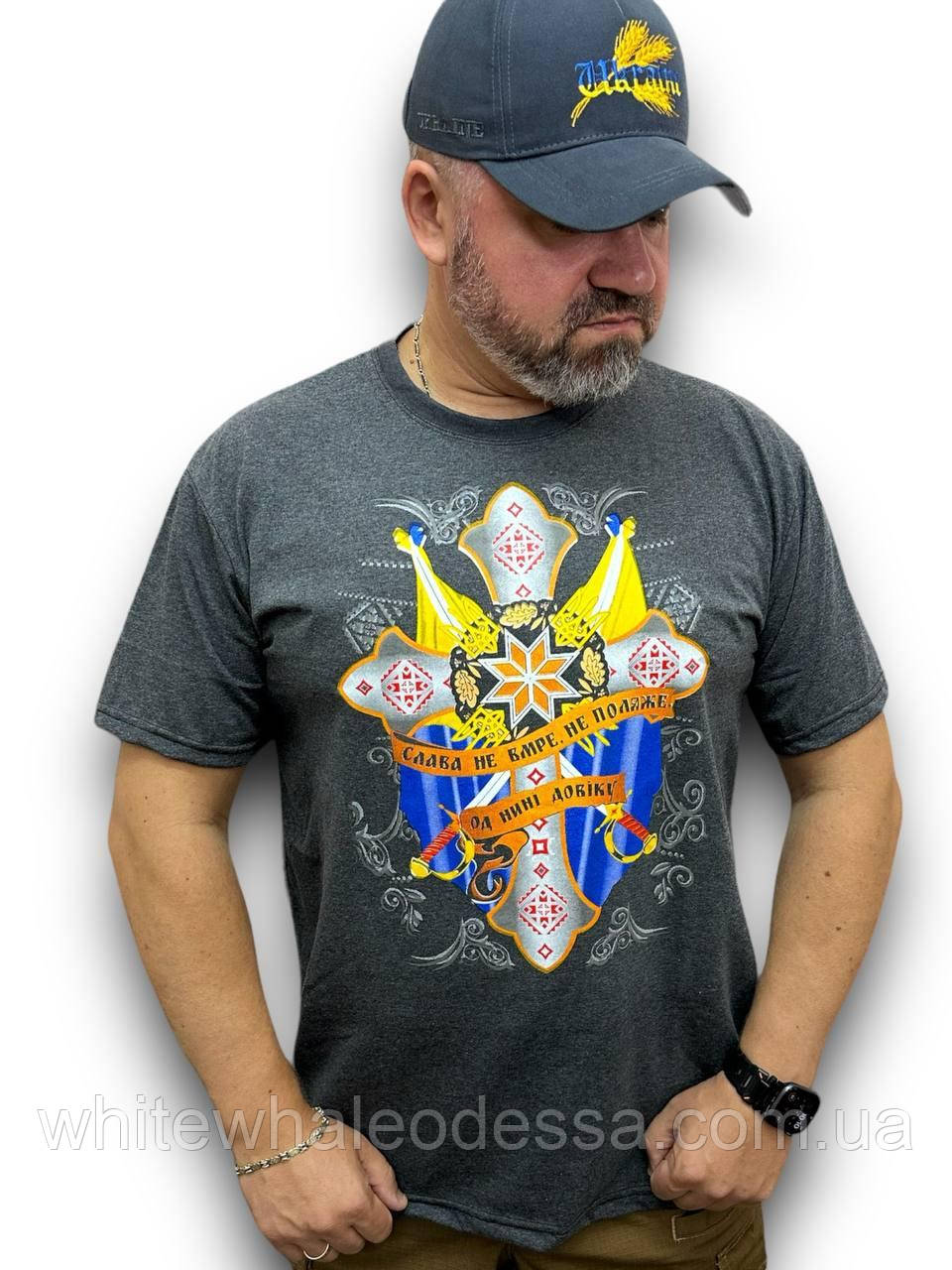 Футболка чоловіча «Слава не вмре й не поляже» антрацит